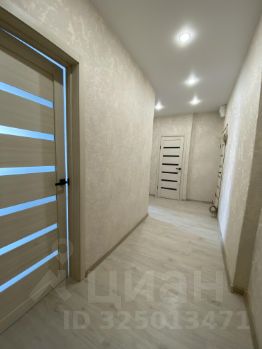 положен ламинат, везде натяжные потолки с софитами.