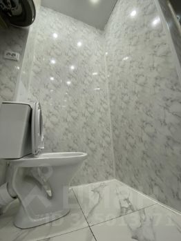 Сан/узел совмещен: керамогранит на полу, стены и потолок обшиты пластиком, софиты,
