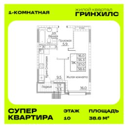 Общая площадь38,6 м²