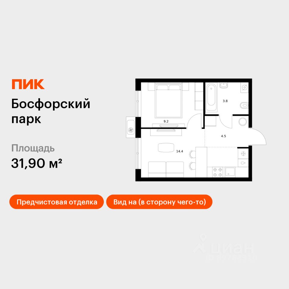 Продаётся 1-комн. квартира площадью 31,9 кв.м на 8 этаже 9 этажного дома (Корпус 10, Секция 1) проекта ПИК Босфорский парк. Светлый просторный подъезд на уровне земли, функциональная планировка, большие окна, предчистовая отделка.