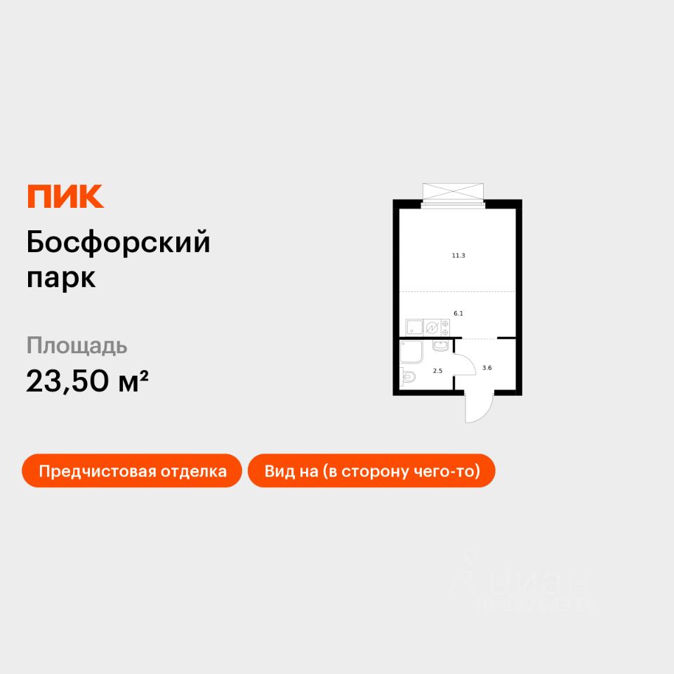 Продаётся квартира-студия площадью 23,5 кв.м на 17 этаже 17 этажного дома (Корпус 5, Секция 1) проекта ПИК Босфорский парк. Светлый просторный подъезд на уровне земли, функциональная планировка, большие окна, предчистовая отделка.