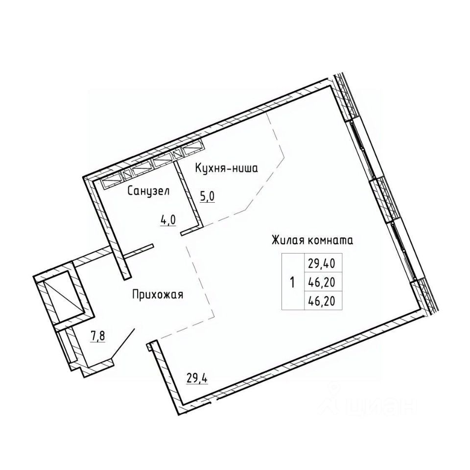 Продаётся 1-комнатная квартира в строящемся доме (Корпус 1), срок сдачи: II-кв. 2026, общей площадью 46.2 кв.м., на 17 этаже.