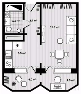 Жилая площадь15,3 м²