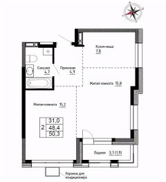 Продаётся 2-комнатная квартира в строящемся доме (Дом 2), срок сдачи: III-кв. 2026, общей площадью 50.3 кв.м., на 10 этаже. ЖК "Новый" - это: