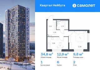 Строим кварталы для жизни с заботой о будущем. Предлагается 1-комнатная квартира комфорт-класса 34,77 кв.м в корпусе 6 на 2 этаже, в ЖК "Квартал Нейбута"
