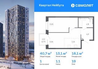 Строим кварталы для жизни с заботой о будущем. Предлагается 1-комнатная квартира комфорт-класса 40,71 кв.м в корпусе 1.1 на 19 этаже, в ЖК "Квартал Нейбута"