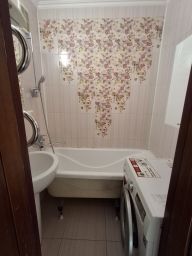 Новым собственникам остаются кухонный гарнитур и вместительный шкаф, титан и стиральная машина.