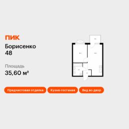Продаётся 1-комн. квартира площадью 35,6 кв.м на 5 этаже 17 этажного дома (Корпус 3, Секция 3) проекта ПИК Борисенко 48. Светлый просторный подъезд на уровне земли, функциональная планировка, большие окна, предчистовая отделка.