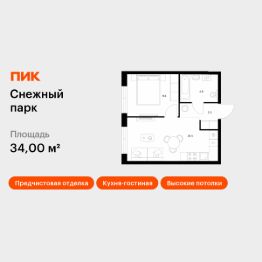 Продаётся 1-комн. квартира площадью 34 кв.м на 25 этаже 25 этажного дома (Корпус 3, Секция 1) проекта ПИК Снежный парк. Светлый просторный подъезд на уровне земли, функциональная планировка, большие окна, предчистовая отделка.
