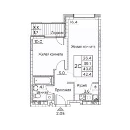 Продаётся 2-комнатная квартира в строящемся доме (Расула Гамзатова, 7к3 (Корпус 3)), срок сдачи: I-кв. 2027, общей площадью 42.4 кв.м., на 21 этаже. GreenHills - обособленный тихий жилой комплекс, состоящий из 3 корпусов. Проект расположен в экологически чистом месте города. На территории комплекса находится развитая инфраструктура с объектами торговли и услуг. Квартиры с эргономичными планировками, уютный двор, подземный паркинг и кладовки: здесь есть все, что нужно для комфортной спокойной жизни.