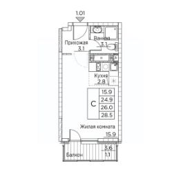 Продаётся студия в строящемся доме (Расула Гамзатова, 7к3 (Корпус 3)), срок сдачи: I-кв. 2027, общей площадью 28.5 кв.м., на 9 этаже. GreenHills - обособленный тихий жилой комплекс, состоящий из 3 корпусов. Проект расположен в экологически чистом месте города. На территории комплекса находится развитая инфраструктура с объектами торговли и услуг. Квартиры с эргономичными планировками, уютный двор, подземный паркинг и кладовки: здесь есть все, что нужно для комфортной спокойной жизни.