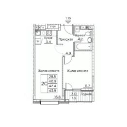 Общая площадь43,9 м²
