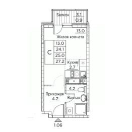 Продаётся студия в строящемся доме (Расула Гамзатова, 7к2 (Корпус 2)), срок сдачи: I-кв. 2027, общей площадью 27.2 кв.м., на 10 этаже. GreenHills - обособленный тихий жилой комплекс, состоящий из 3 корпусов. Проект расположен в экологически чистом месте города. На территории комплекса находится развитая инфраструктура с объектами торговли и услуг. Квартиры с эргономичными планировками, уютный двор, подземный паркинг и кладовки: здесь есть все, что нужно для комфортной спокойной жизни.