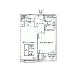 Продаётся 2-комнатная квартира в строящемся доме (Расула Гамзатова, 7к2 (Корпус 2)), срок сдачи: I-кв. 2027, общей площадью 43.9 кв.м., на 11 этаже. GreenHills - обособленный тихий жилой комплекс, состоящий из 3 корпусов. Проект расположен в экологически чистом месте города. На территории комплекса находится развитая инфраструктура с объектами торговли и услуг. Квартиры с эргономичными планировками, уютный двор, подземный паркинг и кладовки: здесь есть все, что нужно для комфортной спокойной жизни.