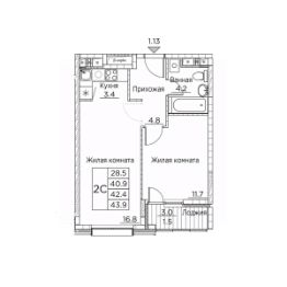 Общая площадь43,9 м²