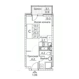 Продаётся студия в строящемся доме (Расула Гамзатова, 7к2 (Корпус 2)), срок сдачи: I-кв. 2027, общей площадью 27.2 кв.м., на 17 этаже. GreenHills - обособленный тихий жилой комплекс, состоящий из 3 корпусов. Проект расположен в экологически чистом месте города. На территории комплекса находится развитая инфраструктура с объектами торговли и услуг. Квартиры с эргономичными планировками, уютный двор, подземный паркинг и кладовки: здесь есть все, что нужно для комфортной спокойной жизни.