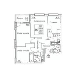 Продаётся 3-комнатная квартира в строящемся доме (Расула Гамзатова, 7к2 (Корпус 2)), срок сдачи: I-кв. 2027, общей площадью 66.8 кв.м., на 20 этаже. GreenHills - обособленный тихий жилой комплекс, состоящий из 3 корпусов. Проект расположен в экологически чистом месте города. На территории комплекса находится развитая инфраструктура с объектами торговли и услуг. Квартиры с эргономичными планировками, уютный двор, подземный паркинг и кладовки: здесь есть все, что нужно для комфортной спокойной жизни.
