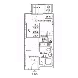 Продаётся студия в строящемся доме (Расула Гамзатова, 7к2 (Корпус 2)), срок сдачи: I-кв. 2027, общей площадью 26.4 кв.м., на 19 этаже. GreenHills - обособленный тихий жилой комплекс, состоящий из 3 корпусов. Проект расположен в экологически чистом месте города. На территории комплекса находится развитая инфраструктура с объектами торговли и услуг. Квартиры с эргономичными планировками, уютный двор, подземный паркинг и кладовки: здесь есть все, что нужно для комфортной спокойной жизни.