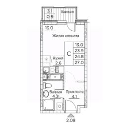 Продаётся студия в строящемся доме (Расула Гамзатова, 7к2 (Корпус 2)), срок сдачи: I-кв. 2027, общей площадью 27 кв.м., на 19 этаже. GreenHills - обособленный тихий жилой комплекс, состоящий из 3 корпусов. Проект расположен в экологически чистом месте города. На территории комплекса находится развитая инфраструктура с объектами торговли и услуг. Квартиры с эргономичными планировками, уютный двор, подземный паркинг и кладовки: здесь есть все, что нужно для комфортной спокойной жизни.