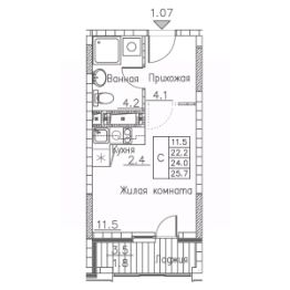 Продаётся студия в строящемся доме (Расула Гамзатова, 7к1 (Корпус 1)), срок сдачи: II-кв. 2026, общей площадью 25.7 кв.м., на 9 этаже. GreenHills - обособленный тихий жилой комплекс, состоящий из 3 корпусов. Проект расположен в экологически чистом месте города. На территории комплекса находится развитая инфраструктура с объектами торговли и услуг. Квартиры с эргономичными планировками, уютный двор, подземный паркинг и кладовки: здесь есть все, что нужно для комфортной спокойной жизни.