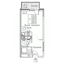 Продаётся студия в строящемся доме (Расула Гамзатова, 7к1 (Корпус 1)), срок сдачи: II-кв. 2026, общей площадью 26.3 кв.м., на 14 этаже. GreenHills - обособленный тихий жилой комплекс, состоящий из 3 корпусов. Проект расположен в экологически чистом месте города. На территории комплекса находится развитая инфраструктура с объектами торговли и услуг. Квартиры с эргономичными планировками, уютный двор, подземный паркинг и кладовки: здесь есть все, что нужно для комфортной спокойной жизни.