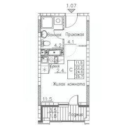 Продаётся студия в строящемся доме (Расула Гамзатова, 7к1 (Корпус 1)), срок сдачи: II-кв. 2026, общей площадью 25.7 кв.м., на 17 этаже. GreenHills - обособленный тихий жилой комплекс, состоящий из 3 корпусов. Проект расположен в экологически чистом месте города. На территории комплекса находится развитая инфраструктура с объектами торговли и услуг. Квартиры с эргономичными планировками, уютный двор, подземный паркинг и кладовки: здесь есть все, что нужно для комфортной спокойной жизни.