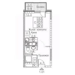 Продаётся студия в строящемся доме (Расула Гамзатова, 7к1 (Корпус 1)), срок сдачи: II-кв. 2026, общей площадью 26.3 кв.м., на 18 этаже. GreenHills - обособленный тихий жилой комплекс, состоящий из 3 корпусов. Проект расположен в экологически чистом месте города. На территории комплекса находится развитая инфраструктура с объектами торговли и услуг. Квартиры с эргономичными планировками, уютный двор, подземный паркинг и кладовки: здесь есть все, что нужно для комфортной спокойной жизни.