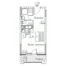 Продаётся студия в строящемся доме (Расула Гамзатова, 7к1 (Корпус 1)), срок сдачи: II-кв. 2026, общей площадью 25.8 кв.м., на 18 этаже. GreenHills - обособленный тихий жилой комплекс, состоящий из 3 корпусов. Проект расположен в экологически чистом месте города. На территории комплекса находится развитая инфраструктура с объектами торговли и услуг. Квартиры с эргономичными планировками, уютный двор, подземный паркинг и кладовки: здесь есть все, что нужно для комфортной спокойной жизни.