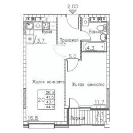 Продаётся 2-комнатная квартира в строящемся доме (Расула Гамзатова, 7к1 (Корпус 1)), срок сдачи: II-кв. 2026, общей площадью 44.6 кв.м., на 14 этаже. GreenHills - обособленный тихий жилой комплекс, состоящий из 3 корпусов. Проект расположен в экологически чистом месте города. На территории комплекса находится развитая инфраструктура с объектами торговли и услуг. Квартиры с эргономичными планировками, уютный двор, подземный паркинг и кладовки: здесь есть все, что нужно для комфортной спокойной жизни.