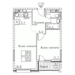 Продаётся 2-комнатная квартира в строящемся доме (Расула Гамзатова, 7к1 (Корпус 1)), срок сдачи: II-кв. 2026, общей площадью 44.6 кв.м., на 18 этаже. GreenHills - обособленный тихий жилой комплекс, состоящий из 3 корпусов. Проект расположен в экологически чистом месте города. На территории комплекса находится развитая инфраструктура с объектами торговли и услуг. Квартиры с эргономичными планировками, уютный двор, подземный паркинг и кладовки: здесь есть все, что нужно для комфортной спокойной жизни.