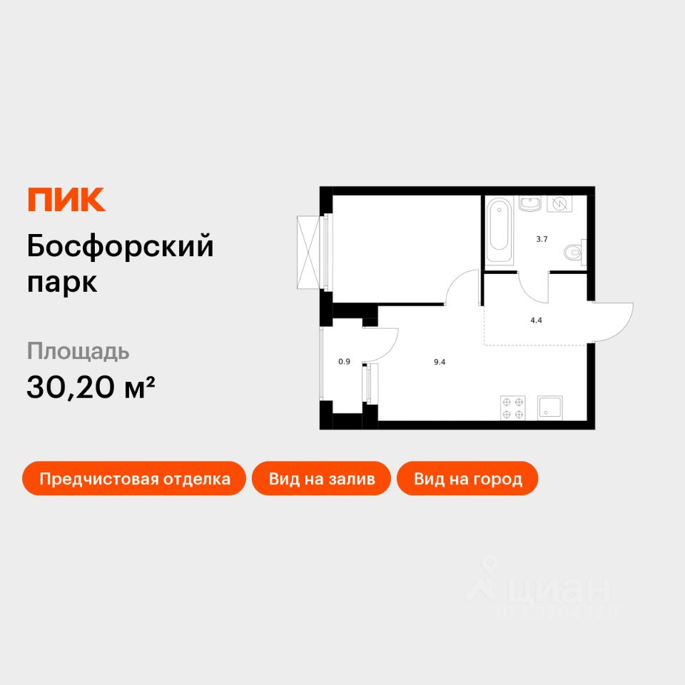 Продаётся 1-комн. квартира площадью 30,2 кв.м на 12 этаже 17 этажного дома (Корпус 5, Секция 1) проекта ПИК Босфорский парк. Светлый просторный подъезд на уровне земли, функциональная планировка, большие окна, предчистовая отделка.