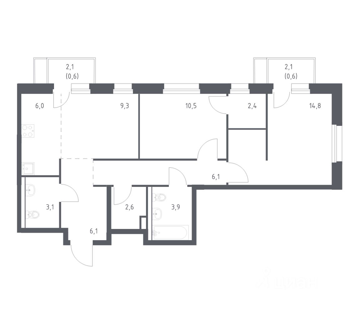 34,6 м²