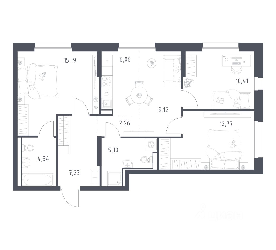 Выбирайте свое место для счастливой жизни: от уютной студии до просторной 3-комнатной квартиры. Хотите погрузиться в творческий процесс ремонта? Присмотритесь к вариантам предчистовой отделки.