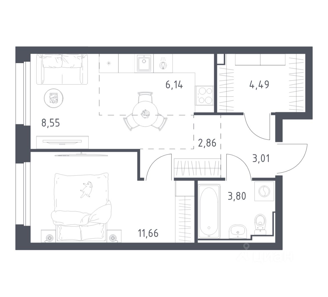 Строим кварталы для жизни с заботой о будущем. Предлагается 1-комнатная квартира комфорт-класса площадью 40.51 кв.м в корпусе 6КВ на 14-м этаже, в жилом комплексе "Квартал Нейбута".