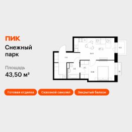 Продаётся 1-комн. квартира площадью 43,5 кв.м на 9 этаже 25 этажного дома (Корпус 4, Секция 2) проекта ПИК Снежный парк. Светлый просторный подъезд на уровне земли, функциональная планировка, большие окна, c отделкой.