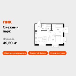 Продаётся 2-комн. квартира площадью 49,5 кв.м на 18 этаже 25 этажного дома (Корпус 3, Секция 1) проекта ПИК Снежный парк. Светлый просторный подъезд на уровне земли, функциональная планировка, большие окна, предчистовая отделка.