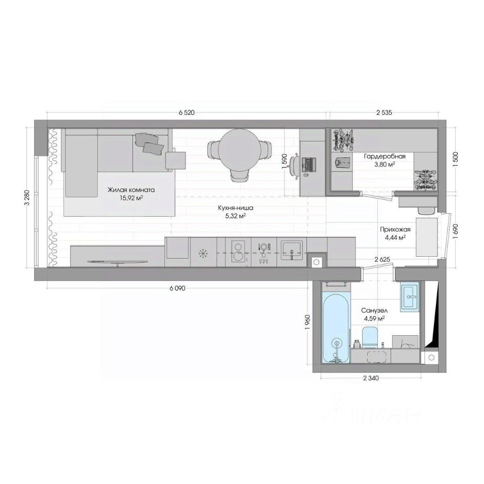 Общая площадь34,93 м²