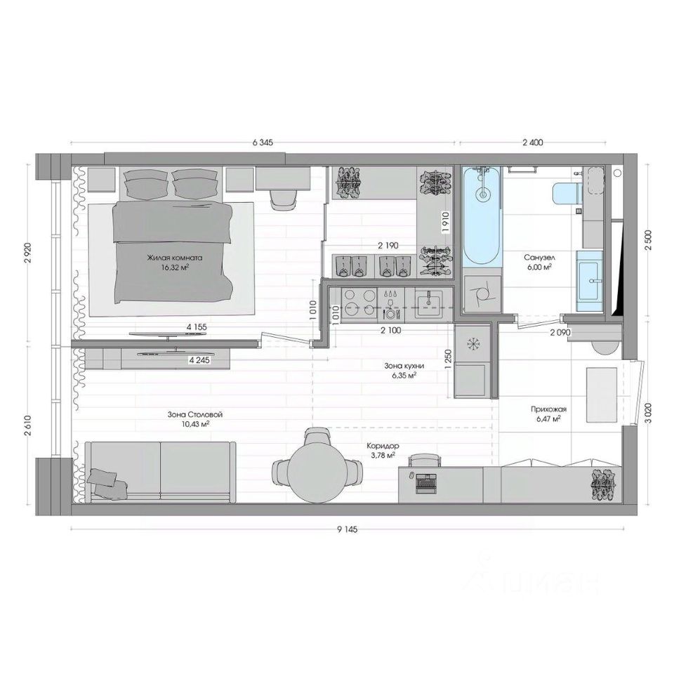 Площадь кухни6,1 м²