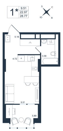 28,77 м²