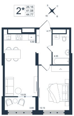 44,77 м²