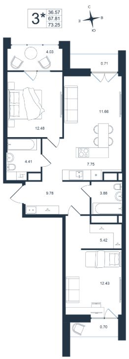 73,25 м²