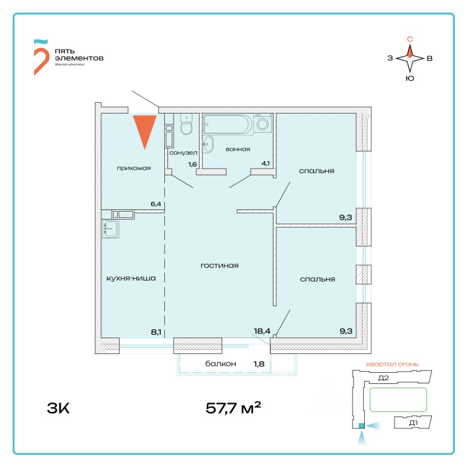 Общая площадь57,7 м²