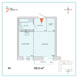 Общая площадь35 м²