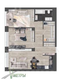 Агенство недвижимости Метры предлагает в продажу в жилом комплексе бизнес класса квартиру площадью 69,1 кв. м, высота потолков 3 м.
