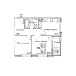 Общая площадь квартиры — 52.6 кв. м, этаж 8 из 23.