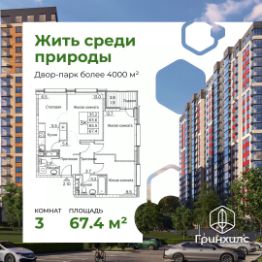 Продается 3-к квартира с отделкой под ключ в ЖК "Гринхилс".