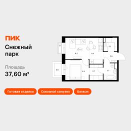 Продаётся 1-комн. квартира площадью 37,6 кв.м на 18 этаже 25 этажного дома (Корпус 4, Секция 2) проекта ПИК Снежный парк. Светлый просторный подъезд на уровне земли, функциональная планировка, большие окна, c отделкой.