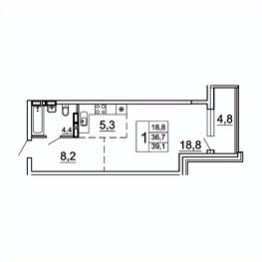 39,1 м²