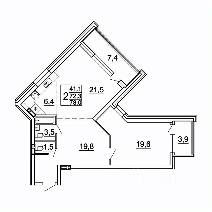 Общая площадь78 м²