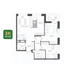 Общая площадь квартиры — 67.7 кв. м, этаж 13 из 19.